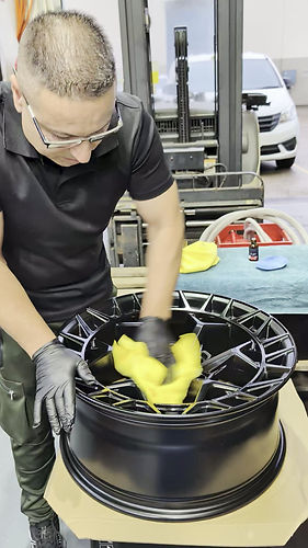 Tires, wheels, and wheel arches deep cleaned, tires are dressed to a satin finish with a water-based dressing.